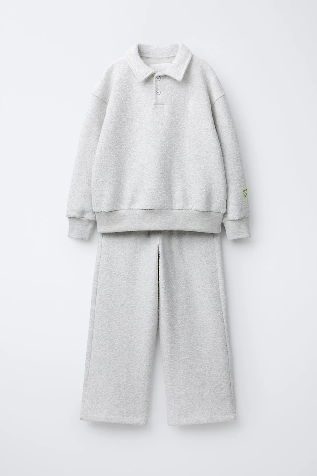 SWEATSHIRT AND WIDE LEG PANTS WITH TEXTURED LABEL SET