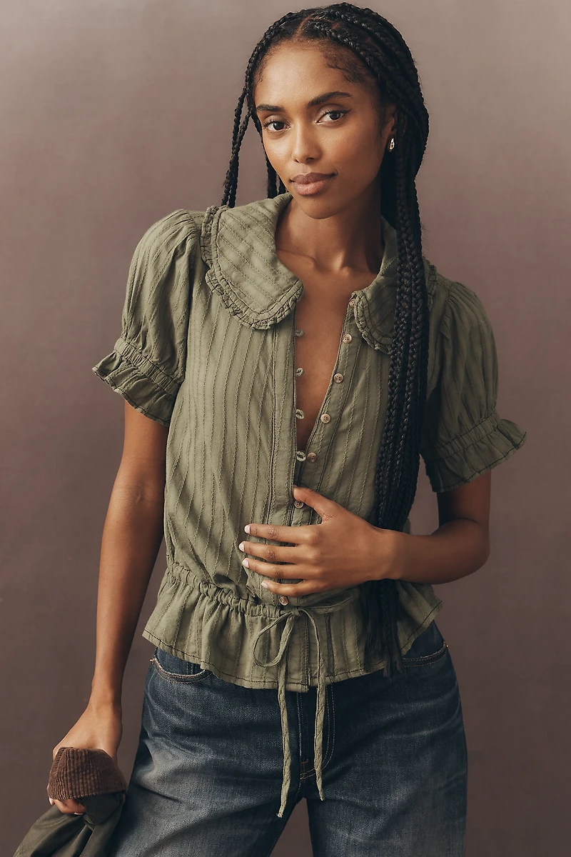 The Keira Cinch-Tie Peplum Blouse by Pilcro