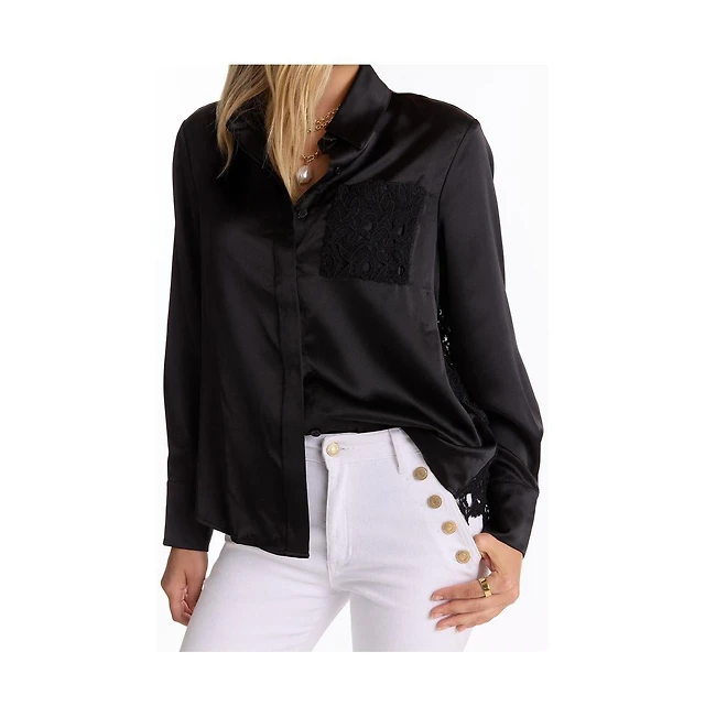 The Noli Shop Womens Jena Lace Button Up Shirt - Black