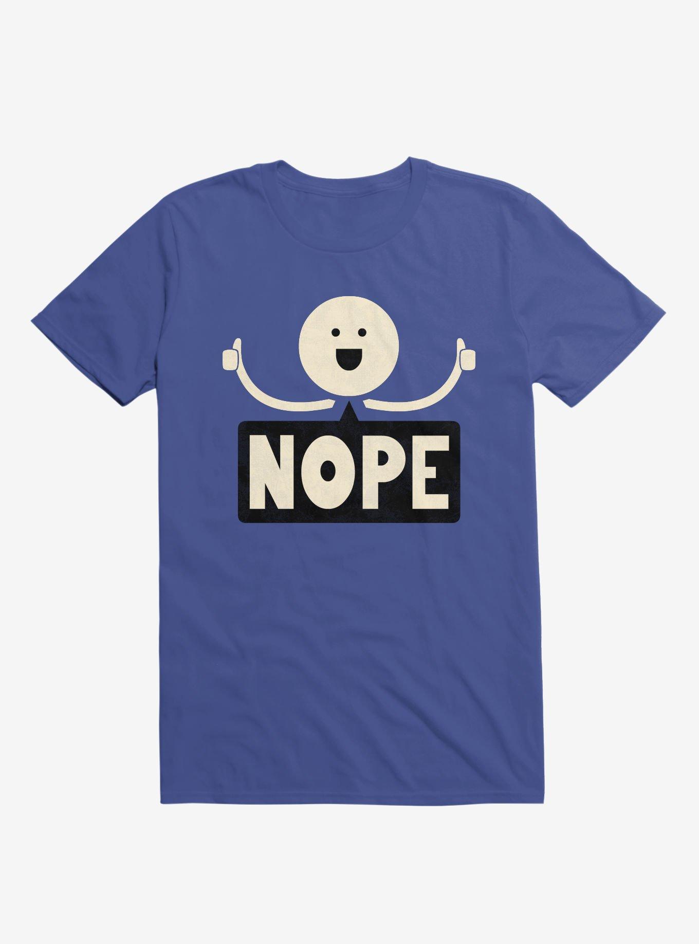 Say yes to this awesome royal blue graphic tee! It features a smiling figure giving the thumbs up and proclaiming, "NOPE." Officially licensed art from handsoffmydinosaur.