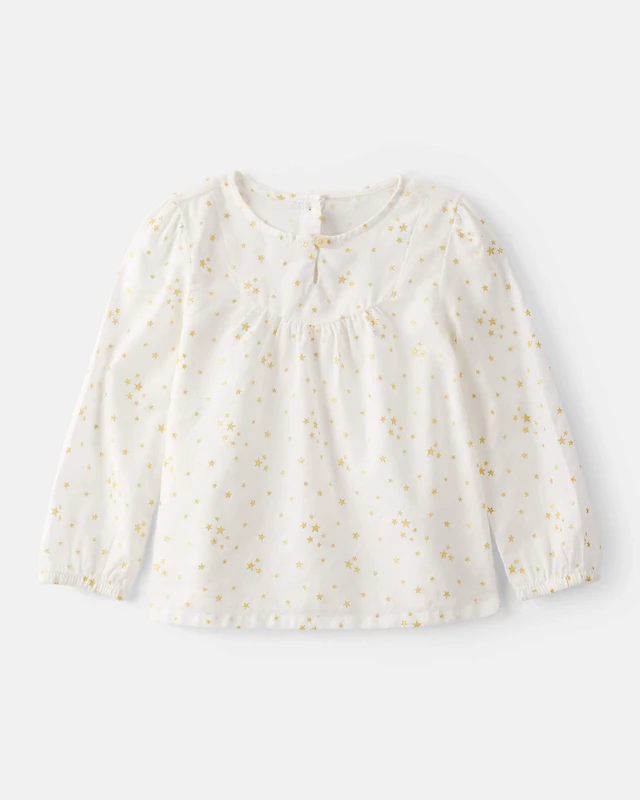 Toddler Girl Star Print Cotton Long-Sleeve Top - White
