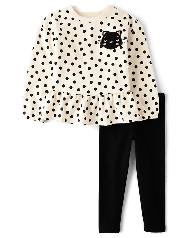 Toddler Girls Applique Cat 2-Piece Outfit Set