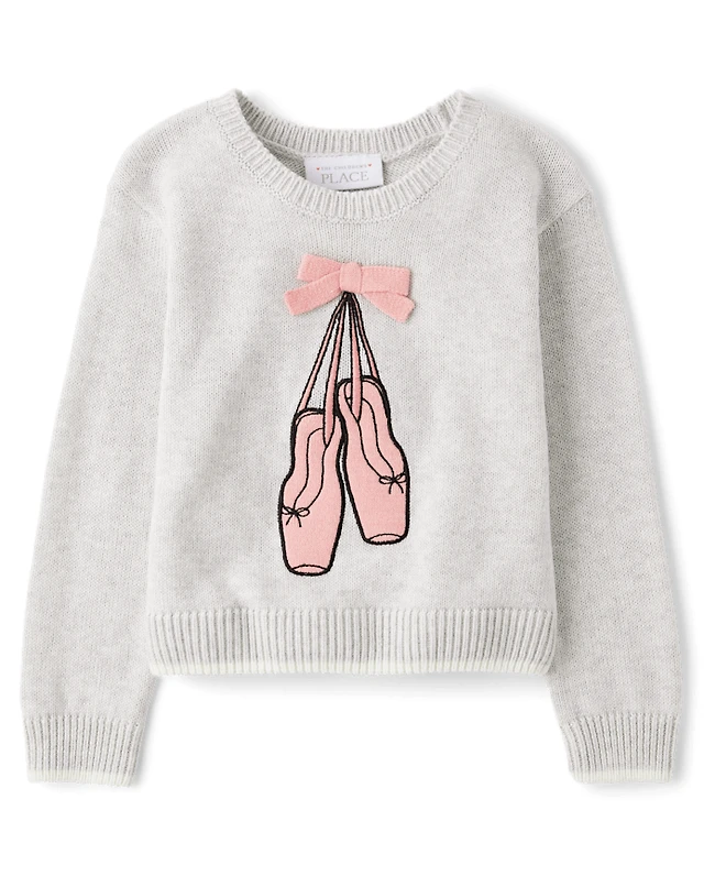 Toddler Girls Embroidered Ballet Slippers Sweater