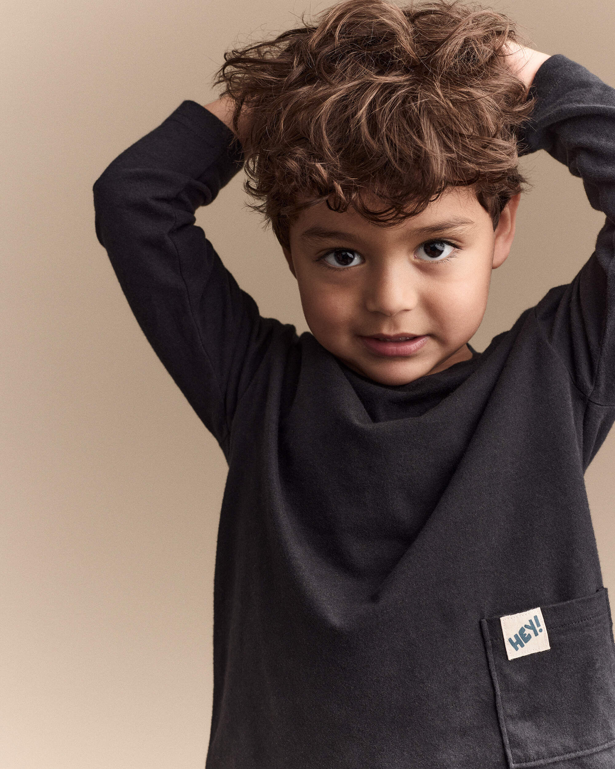 Toddler 'Hey' Long-Sleeve Pocket Tee - Black