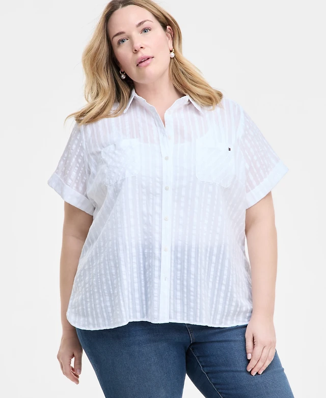 Tommy Hilfiger Plus Size Cotton Shadow-Striped Camp Shirt