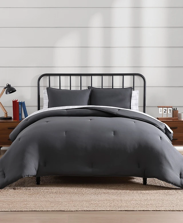 Tommy Hilfiger Modern Windowpane Faux Linen 3-Pc. Comforter Set