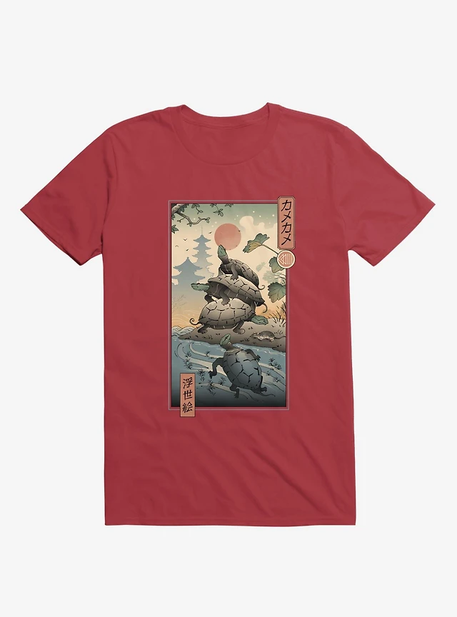 Turtle Stream Kame Ukiyo-e Red T-Shirt