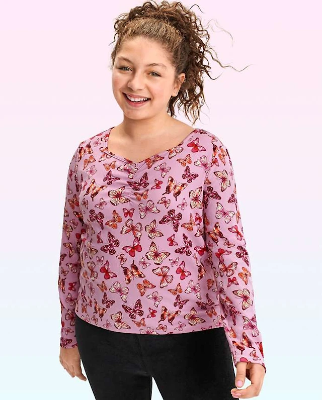 Tween Girls Butterfly Ruched Top