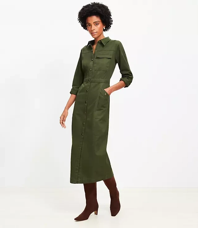 Lou & Grey Sandwashed Midi Pocket Shirtdress