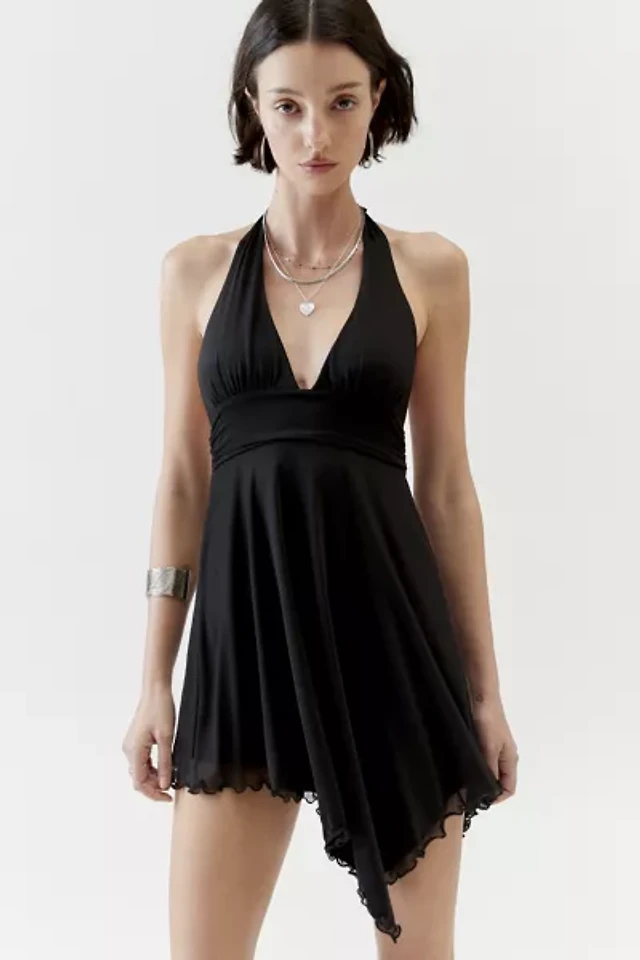 UO Lauren Mesh Plunge V-Neck Halter Mini Dress