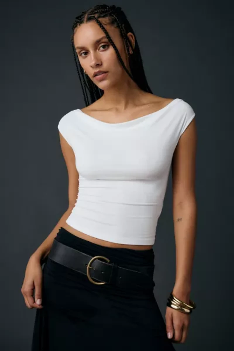 Slinky jersey knit UO cowl neck top in a slim, body-hugging fit. Crop top designed with a draped boatneck, cap sleeves and a low scoop back topped with a tie detail for an elevated finish. Try it styled with jeans, skirts or pants and toss a jacket over your shoulders for chic going out outfit ideas. Only at Urban Outfitters.