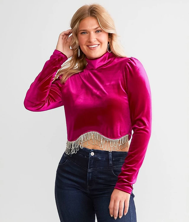 Velvet Rhinestone Fringe Top