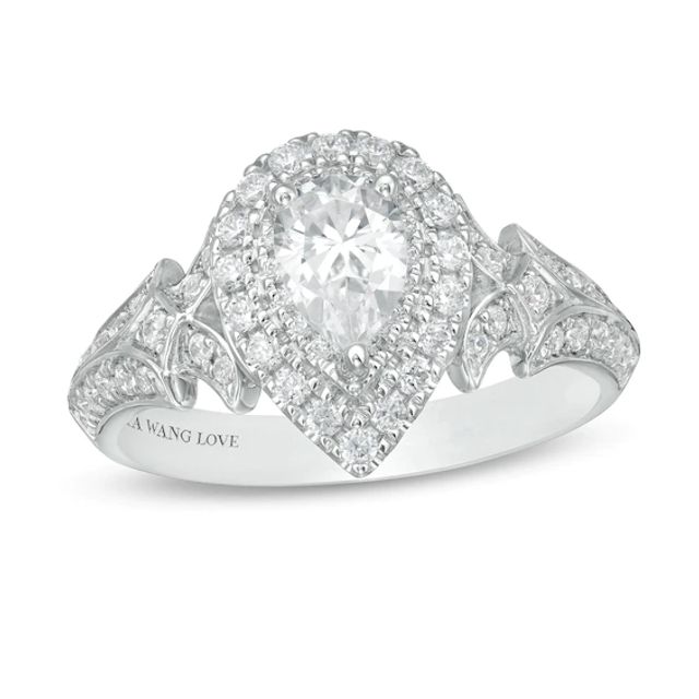 Vera Wang Love 7/8 CT. T.w. Pear-Shaped Diamond Double Frame Engagement Ring in 14K White Gold