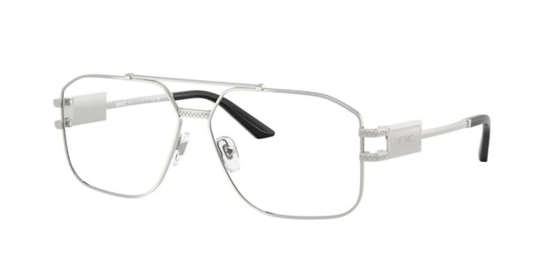 Versace ve1302 eyeglasses are a stylish and functional fusion with an irregular frame shape. The sleek silver frame and unique irregular shape are crafted from durable steel, giving off a modern and edgy vibe. The solid color lenses offers a monochromatic look that can suit any fashion-forward individual. Available with prescription lenses.