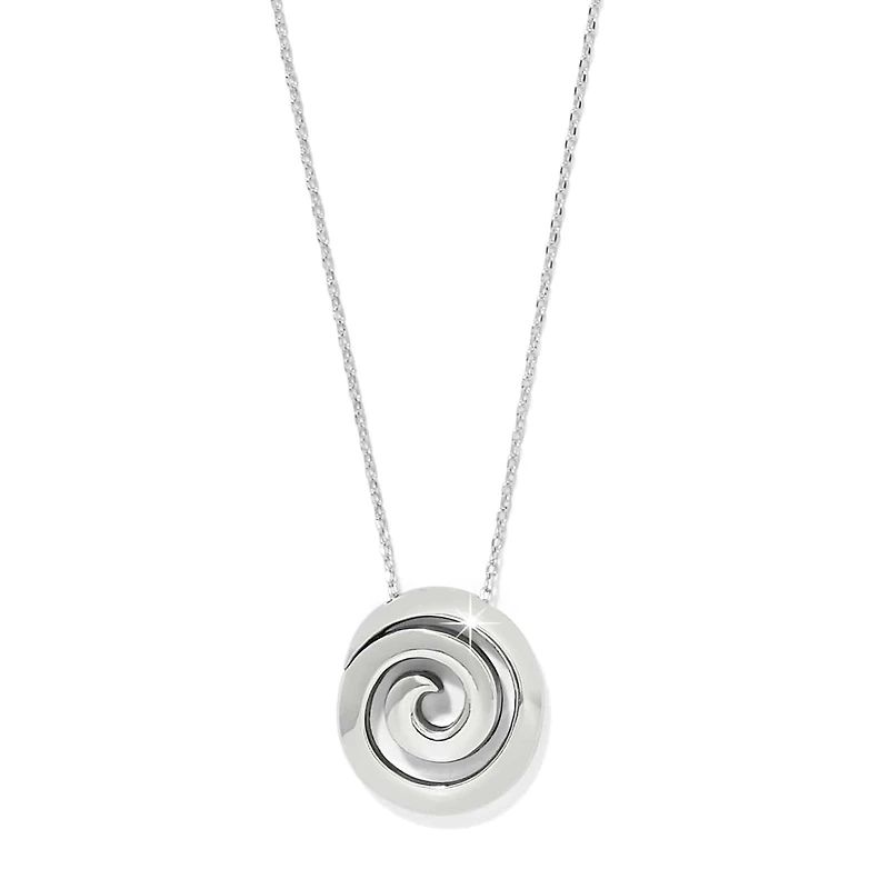 A single, silver-plated swirl hangs elegantly from this adjustable chain. Simple, fun, and modern.