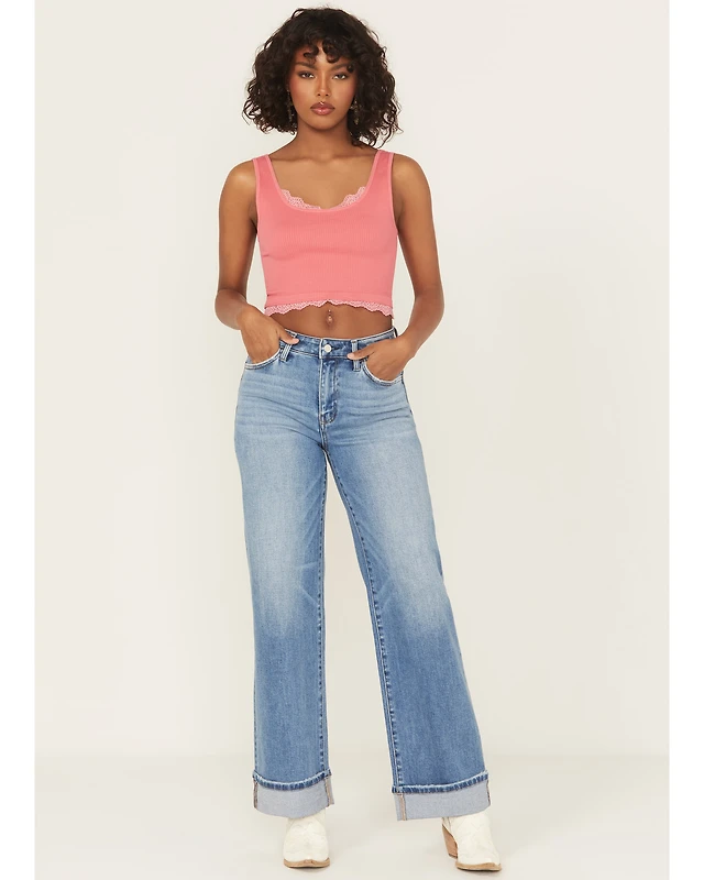 Vervet Women's Medium Wash High Rise Cuffed Wide Leg Denim Jeans