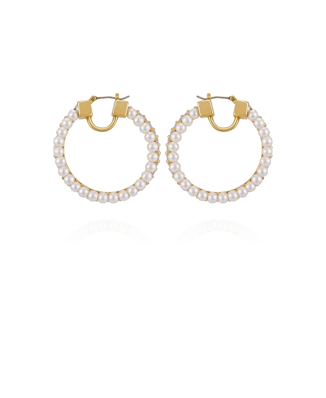 Vince Camuto Gold-Tone Crystals Cultivated Pearl Hoop Earrings