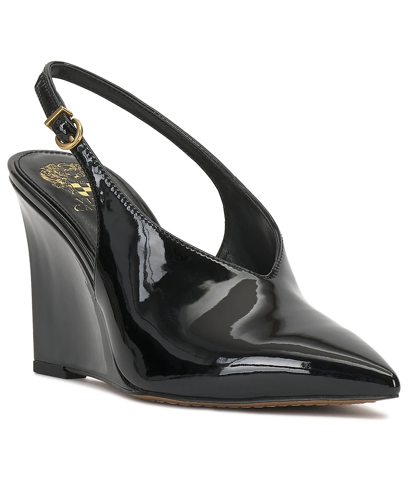 Enjoy comfortable elevation with these Vince Camuto slingback wedges. The pointy toe design creates a streamlined silhouette that elongates the leg. An adjustable strap provides customized fit around the ankle for secure wear. Wedge construction offers stable support throughout the day. About The Brand: Vince Camuto is a globally renowned brand that embodies European styling. Detailed craftsmanship across the line embraces current trends while maintaining a classic aesthetic.