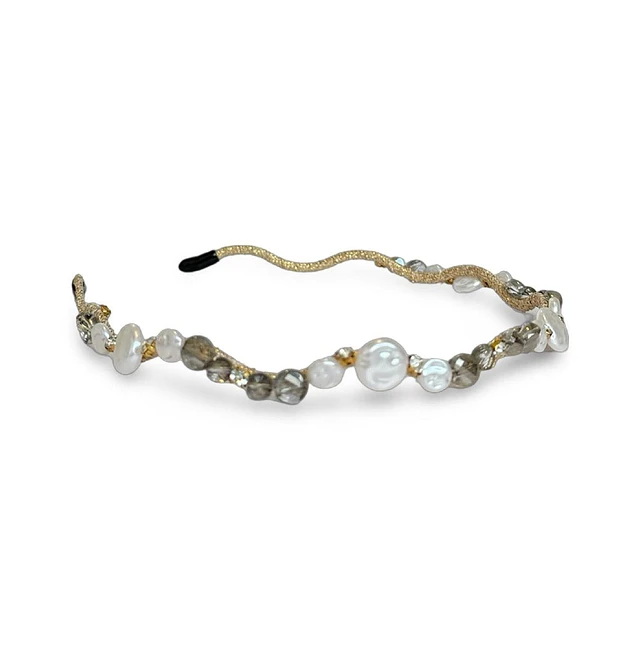 Wavy Oyster Pearl Headband - Grey
