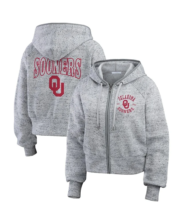 Wear by Erin Andrews Women's Heather Gray Oklahoma Sooners Wear Speckle Double-Hit Raglan Full-Zip Hoodie