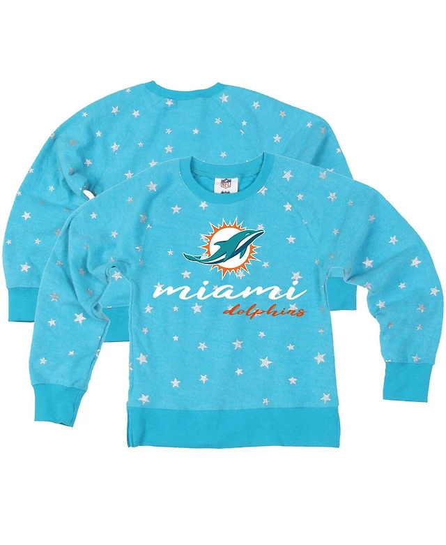 Wes & Willy Big Girls Aqua Miami Dolphins Shimmer Star Reverse Fleece Pullover Sweatshirt