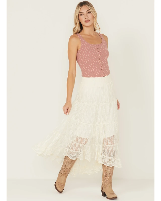 Wild Moss Women's Crochet Studded Yoke Flowy Tank Top