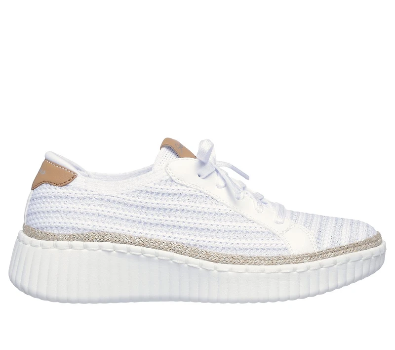 Take a walk on the stylish side in machine-washable comfort with Skechers Wilshire Blvd - Passion Play. This vegan Skechers No Tie Fit® design features a sweater knit upper with faux laces, jute midsole trim, a Comfort Pillow at the heel, and a cushioned Skechers Air-Cooled Memory Foam® insole.