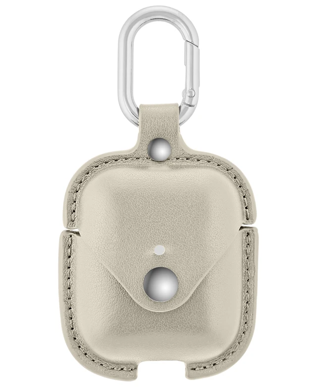 Anne Klein Women's Blush Pink and Beige Faux Leather Case with Spring Clip designed for AirPods