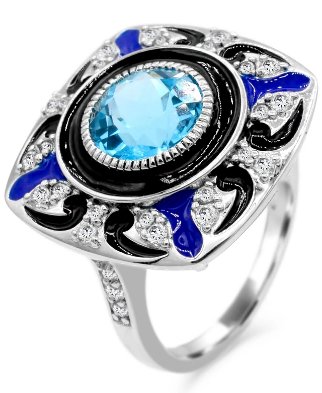 Women's Blue Topaz (2 1/4 ct.t.w.) and Enamel Ring in Sterling Silver
