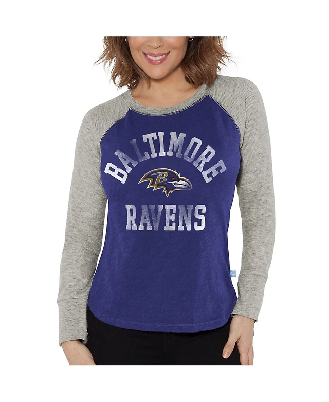 Women's G-iii 4Her by Carl Banks Purple, Heather Gray Distressed Baltimore Ravens Waffle Knit Raglan Long Sleeve T-shirt