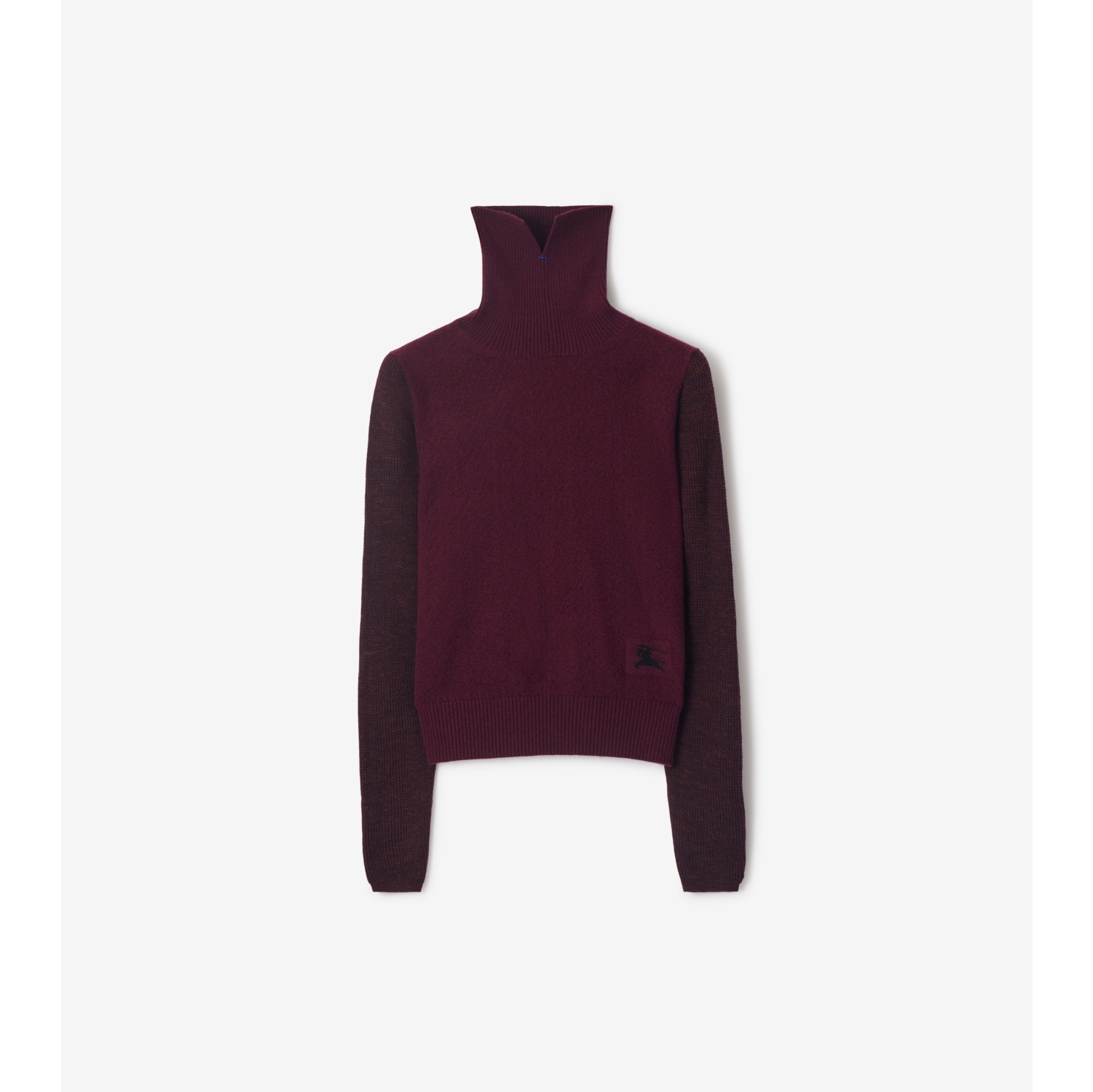A rollneck sweater made in Italy from an alpaca wool blend with a hint of stretch. Debuted on the Burberry Winter 2025 runway, the style features various knitting techniques to create contrasting tones and textures. Knitted to a slim fit, the sweater is finished with a patch featuring our Equestrian Knight Design at the hem.