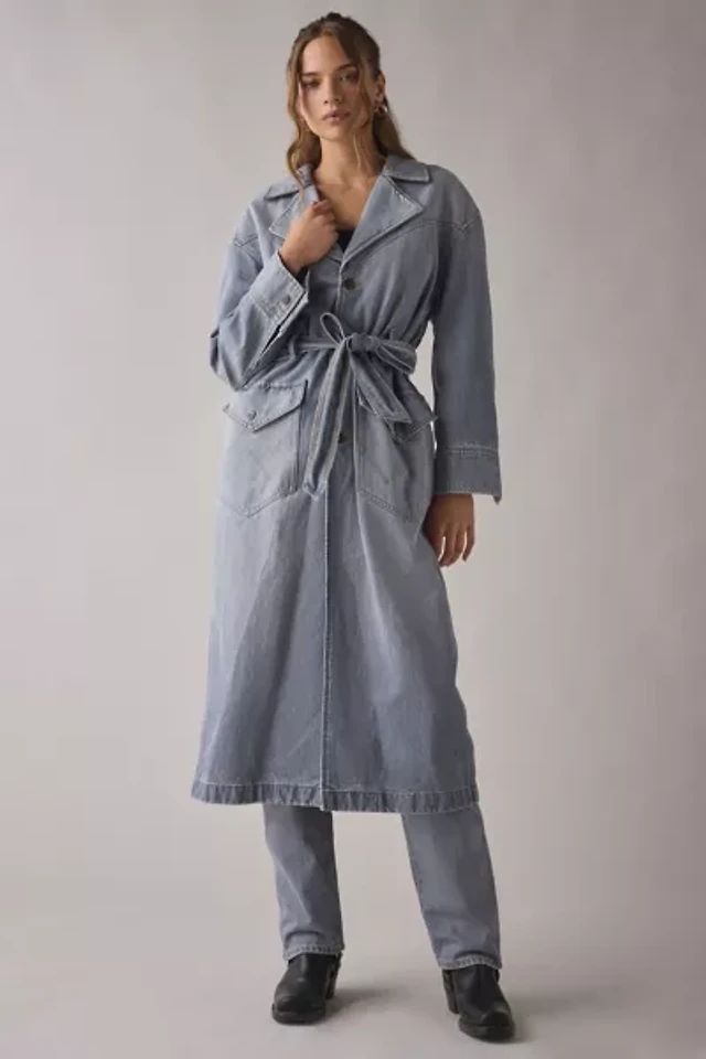 DENIM TRENCH COAT WITH CONTRASTING COLLAR
