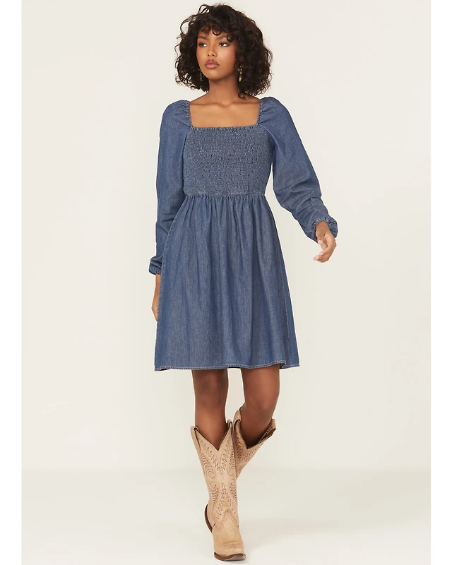 Wrangler Retro Women's Dark Wash Long Sleeve Denim Mini Dress
