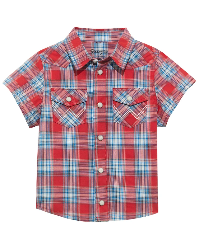 Wrangler Toddler Boys' Plaid Print Short Sleeve Snap Western Shirt