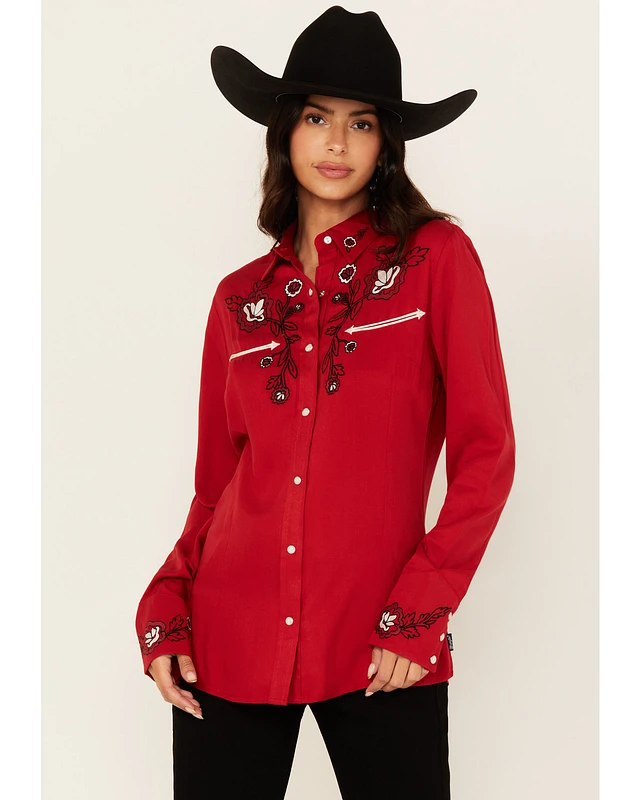 Wrangler Women's Floral Embroidered Long Sleeve Snap Western Shirt