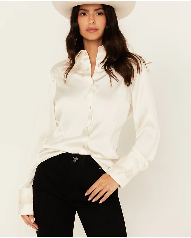 Wrangler Women's Star Embroidered Long Sleeve Snap Western Shirt