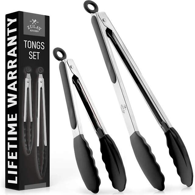 Zulay Kitchen Premium Set of Stainless Steel Tongs 2-Pc.