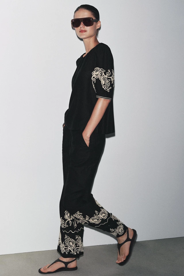ZW COLLECTION LINEN BLEND EMBROIDERED TOP