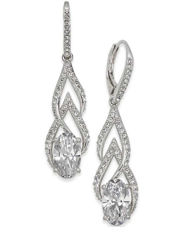 I.n.c. International Concepts Silver-Tone Crystal Pave Double Teardrop Drop Earrings, Created for Macy's