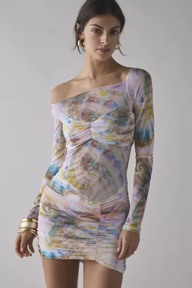 AFRM Vivian Almond Kiss One Shoulder Ruched Mini Dress