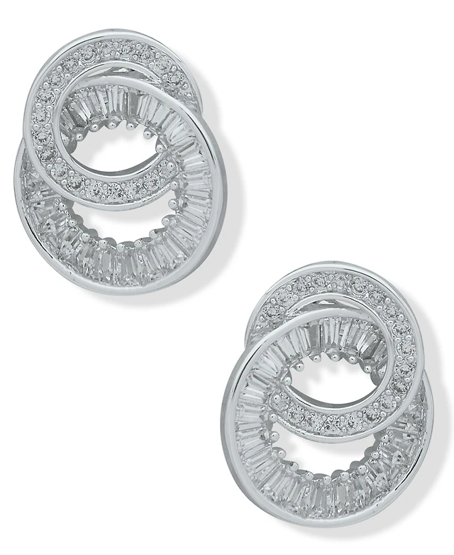 Anne Klein Silver-Tone Cubic Zirconia Double Circle Button Earrings