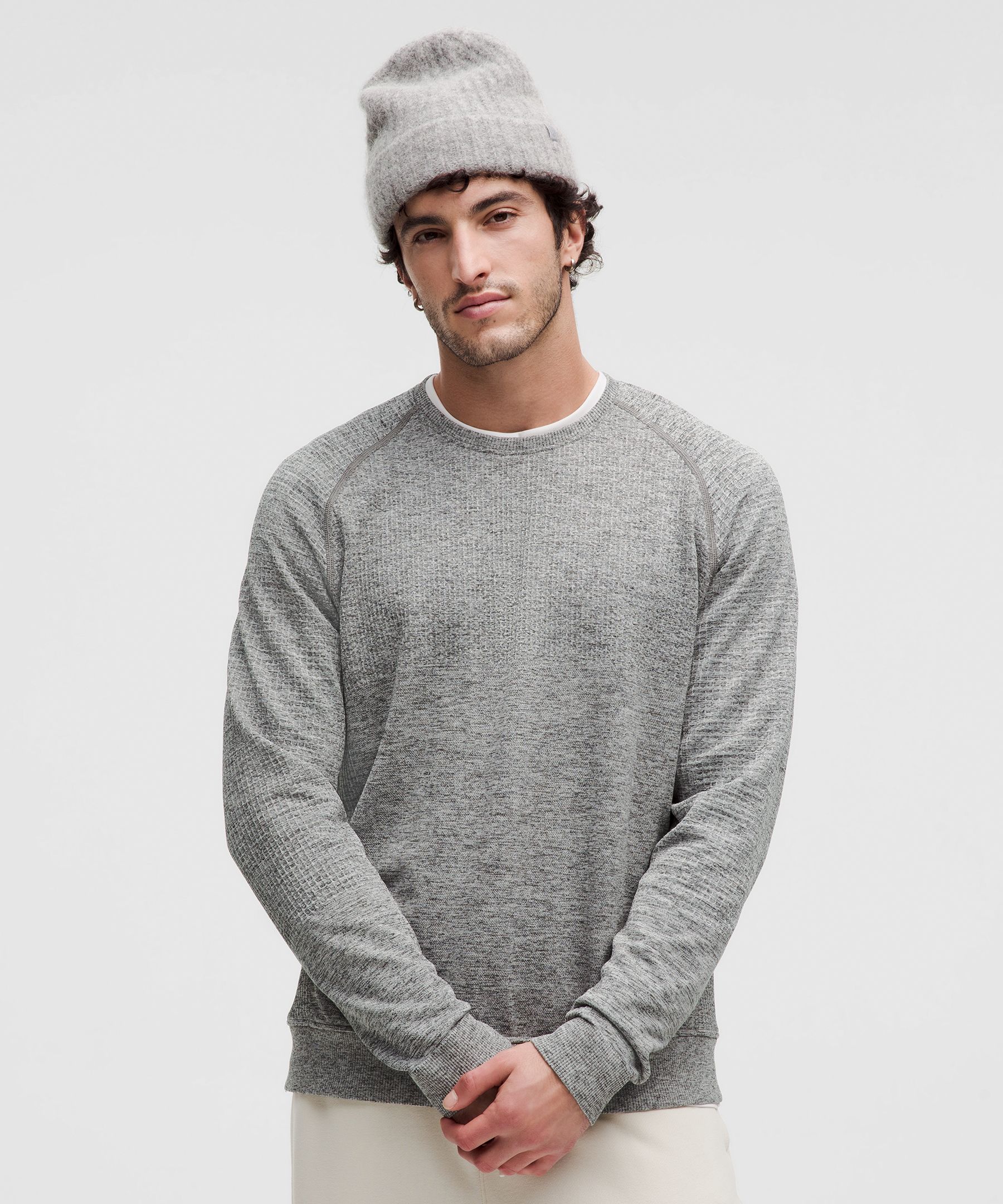 Men's Organic Cotton Waffle Sweater, Rollneck Crew, Stripe
