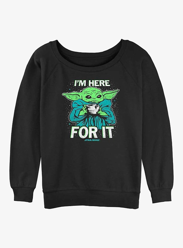 Star Wars The Mandalorian Grogu Tea I'm Here For It Girls Slouchy Sweatshirt