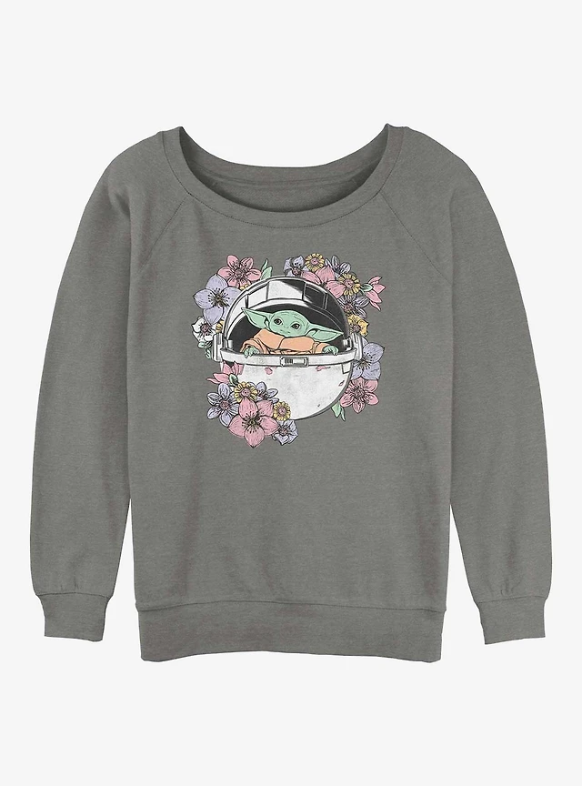 Star Wars The Mandalorian Grogu Floral Bassinet Girls Slouchy Sweatshirt
