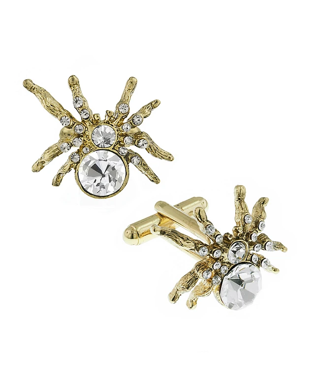 1928 Jewelry 14K Gold Plated Crystal Spider Cufflinks