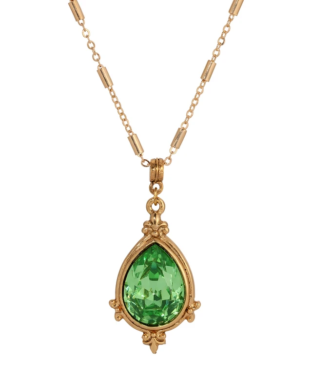 2028 14K Gold Dipped Green Crystal Pendant Necklace