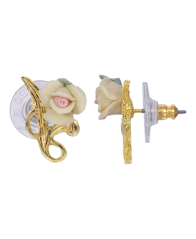 2028 Women's 14K Gold-tone Green Round Button Stud Earrings