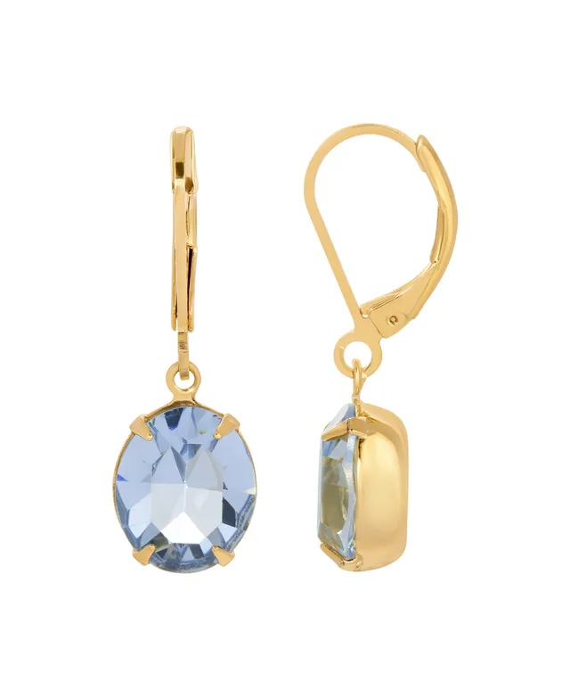 2028 14K Gold-tone Light Blue Oval Crystal Earrings