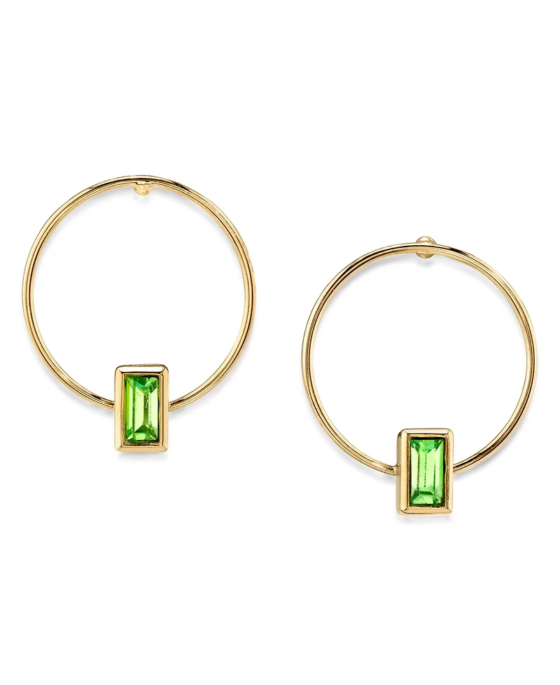 2028 14K Gold-tone Rectangle Crystal Hoop Stainless Steel Post Small Earrings
