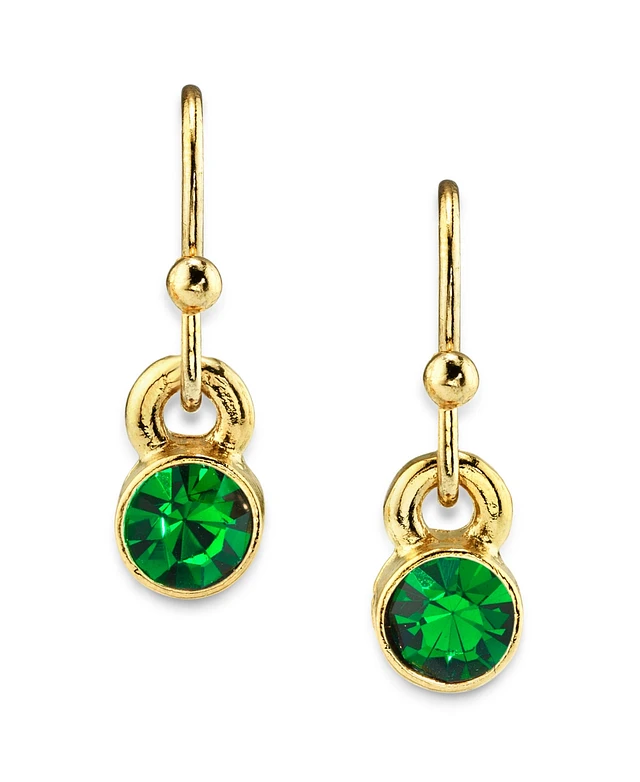 2028 14K Gold-tone Round Crystal Wire Drop Earring